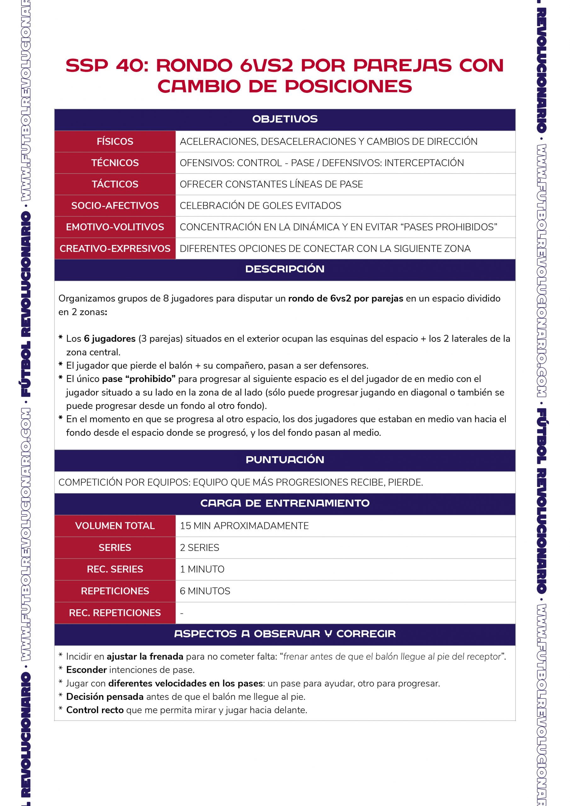 En esta ocasión, el rondo planteado presenta un componente socio-afectivo y una carga cognitiva grande. A nivel técnico / táctico, nos centramos en los siguientes aspectos: